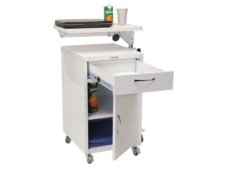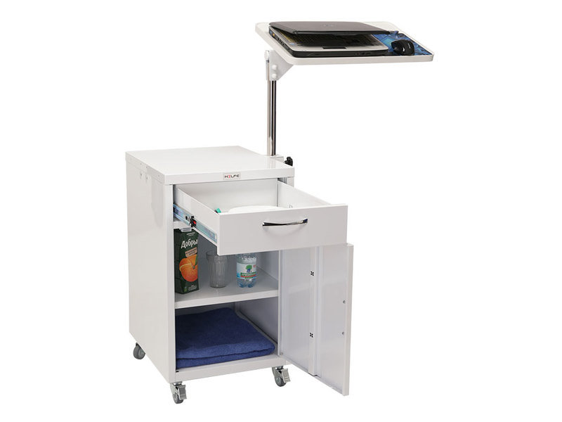 Предназначена для хранения личных вещей пациентов, медикаментов в больничной палате или домашних условиях. Тумба комплектуется прикроватным поворотным столиком, который помогает больному с постельным режимом принимать пищу, читать, разместить ноутбук для работы.