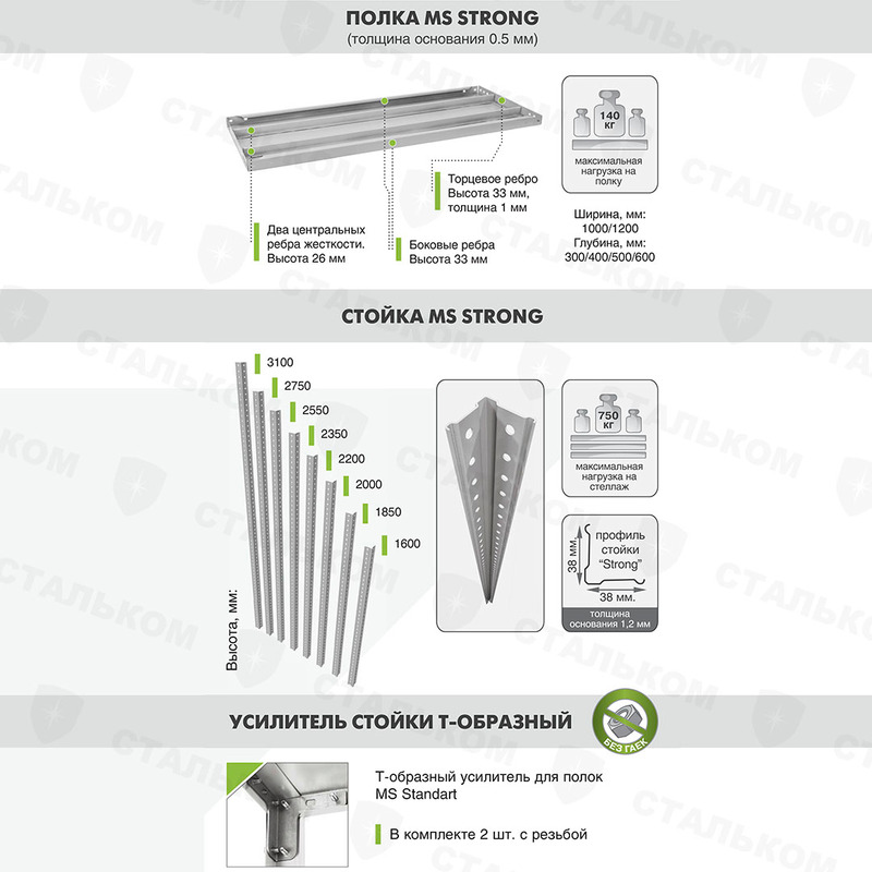 - Стеллажи Практик: MS Standart, Strong, Hard, Pro, U