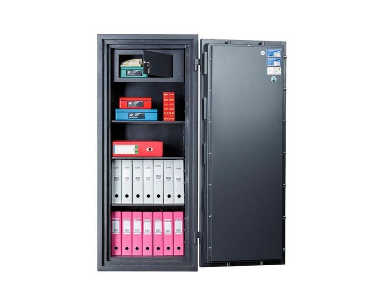 Предназначен для сохранности документов и ценностей при пожаре и взломе. Рекомендованная сумма хранения денег до 6.5 млн. руб. для физических лиц и до 2 млн. руб. для юридических лиц. Устойчивость к взлому по ГОСТ Р 50862-2017: класс 2 (ГОСТ Р).